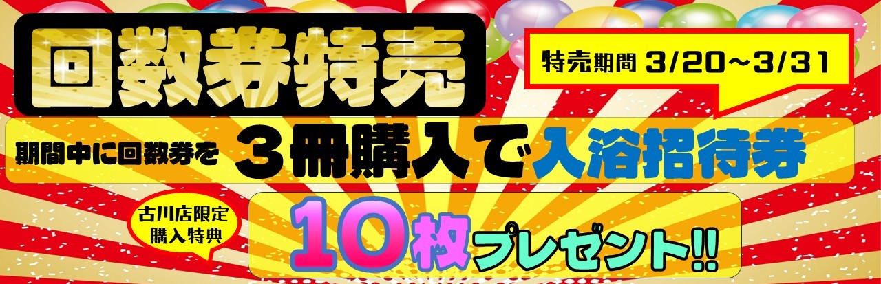招待券付き入浴回数券特売!今月は20日から月末まで