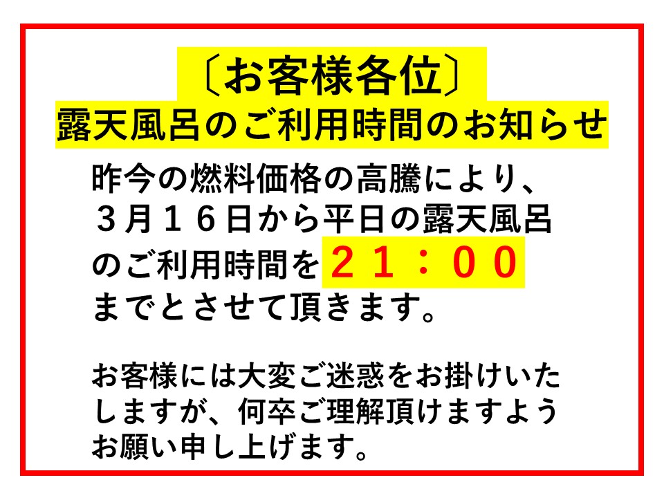 露天風呂ご利用時間のお知らせ